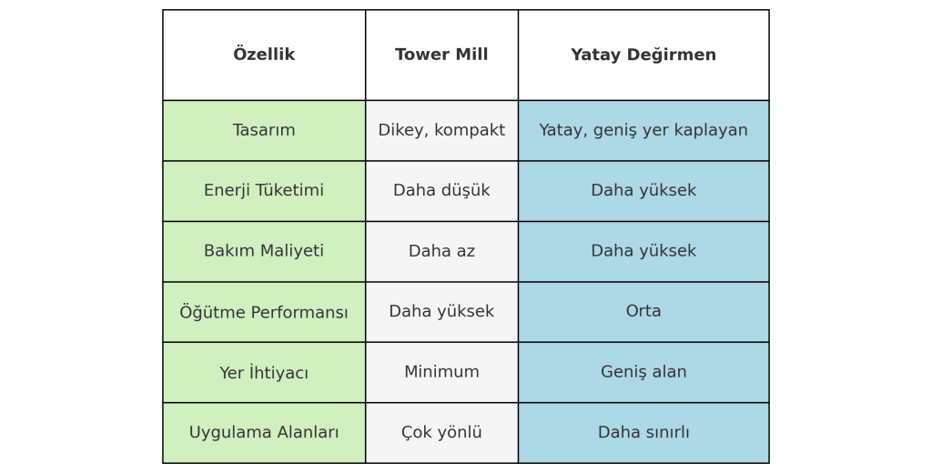 Geleneksel Değirmenler ile Tower Mill’in Karşılaştırılması